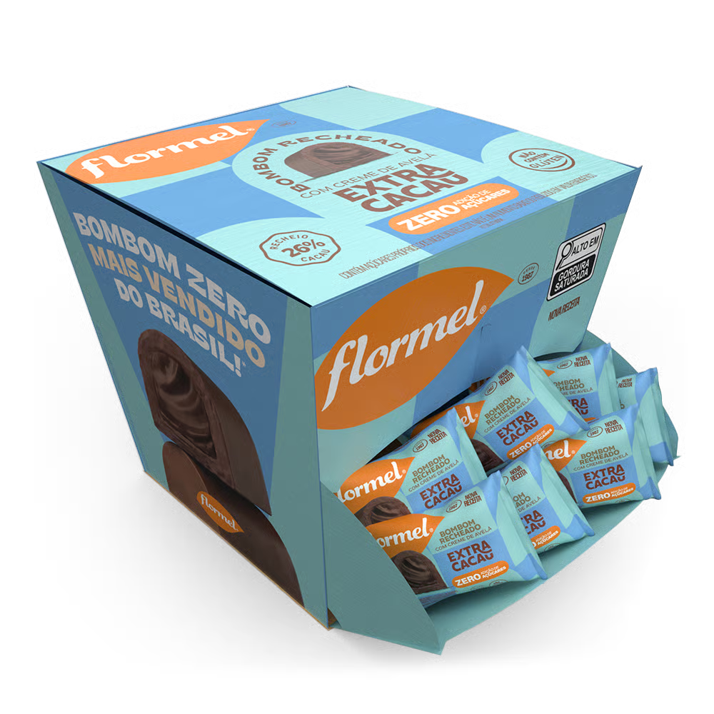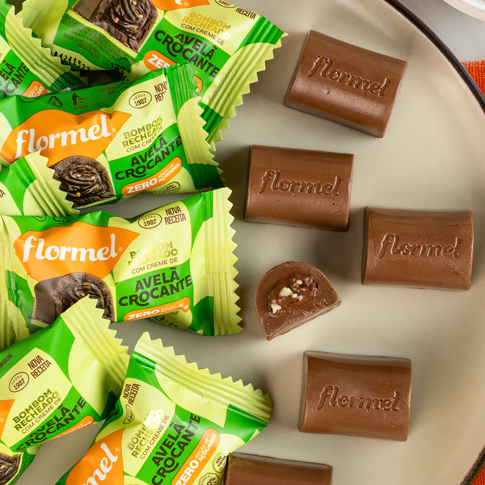 Um momento doce, na medida certa. A linha Bombom Flormel Mini Zero Açúcares combina chocolate de qualidade com recheios cremosos, entregando sabor intenso em porções pequenas e equilibradas.