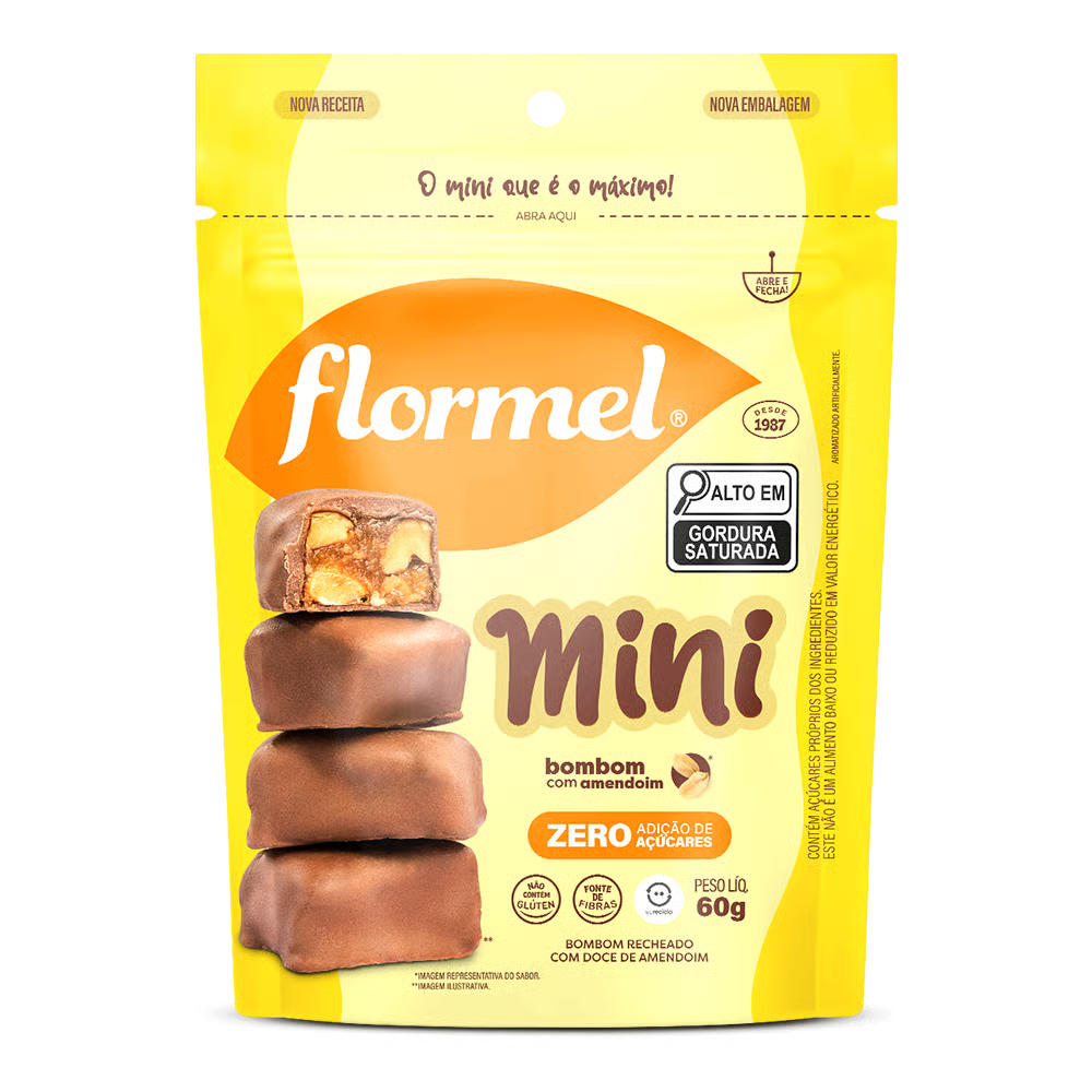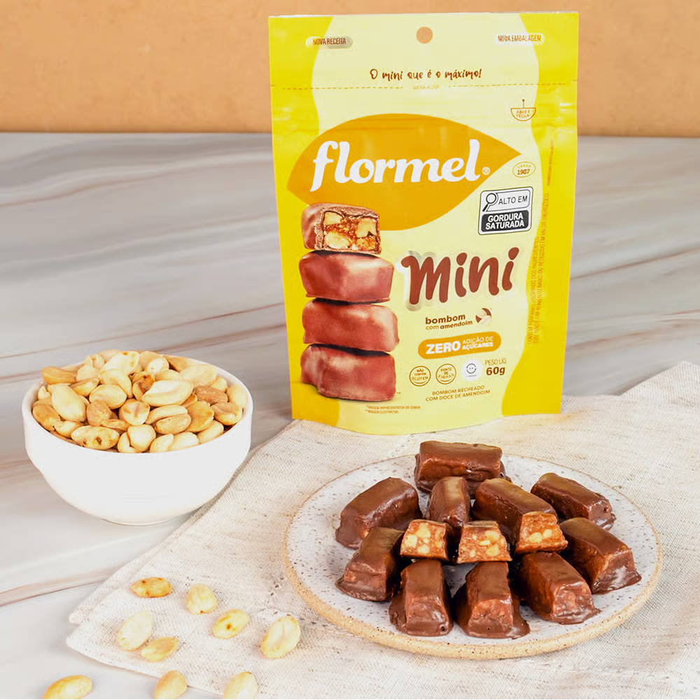 Pequenos no tamanho, grandes no sabor! Os Bombons Flormel Mini Zero Açúcares são ideais para quem quer adoçar o dia de forma mais equilibrada, sem abrir mão do prazer de um bom chocolate.