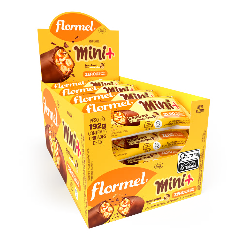 Pequenos no tamanho, grandes no sabor! Os Bombons Flormel Mini Zero Açúcares são ideais para quem busca um doce prático e saboroso, sem abrir mão de uma escolha mais equilibrada.